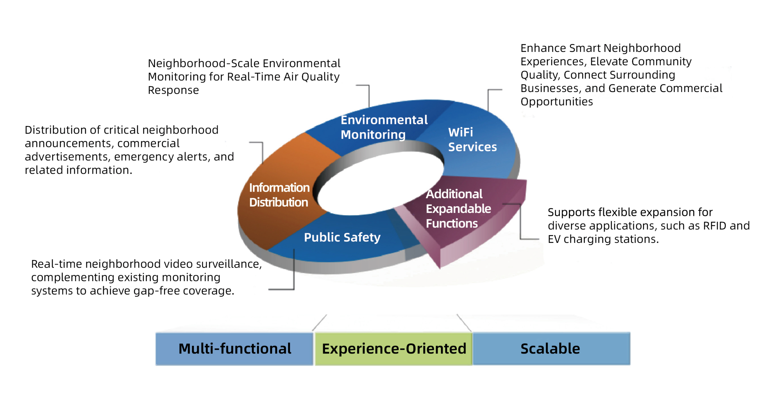 management system combining smart lighting, video surveillance, information display, and environmental monitoring functions. These systems can collaborate and conduct, significantly improving management efficiency and advancing smart city development.