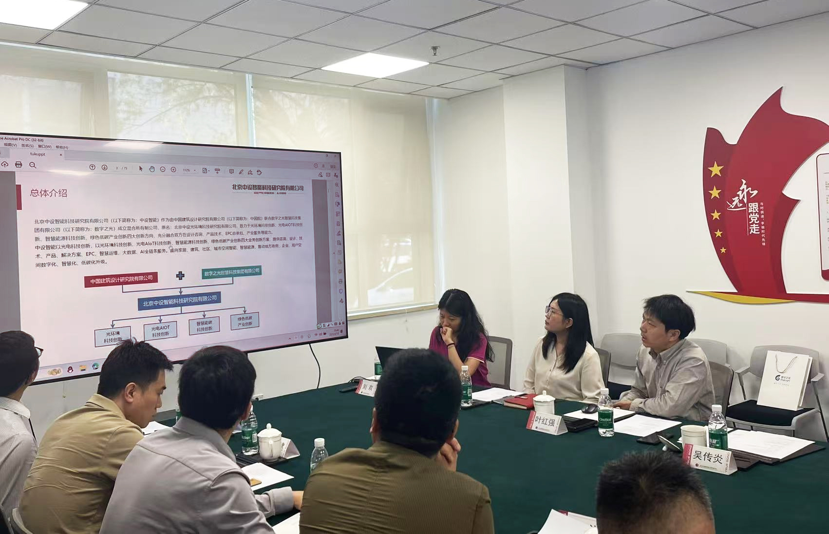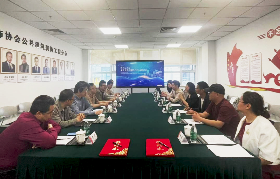 On May 13, 2025, at the Public Building Decoration Engineering Branch of the China Building Decoration Association, the “Strategic Cooperation Technology Seminar” jointly held by Beijing Zhongshe Intelligent Technology Research Institute Co., Ltd. (hereinafter referred to as “Zhongshe Intelligent”) and Beijing Zhubang Building Decoration Engineering Co., Ltd. (hereinafter referred to as “Zhubang Company”) came to a successful conclusion . Wu Chuanyan, Chairman of Zhongshe Intelligent, Liu Yang, General Manager of Zhubang Company, and representatives of core executives of both companies attended the meeting. Special guests Luo Sheng, Secretary-General of the Public Building Decoration Engineering Branch of the China Building Decoration Association, and Li Rongjian, Director of External Relations, attended the meeting. As two companies under the China Architecture Design and Research Institute, the meeting focused on cooperation in the fields of prefabricated decoration supply chain, light environment design and intelligent space technology integration, and signed a “Strategic Cooperation Agreement” to open a new chapter of collaborative development